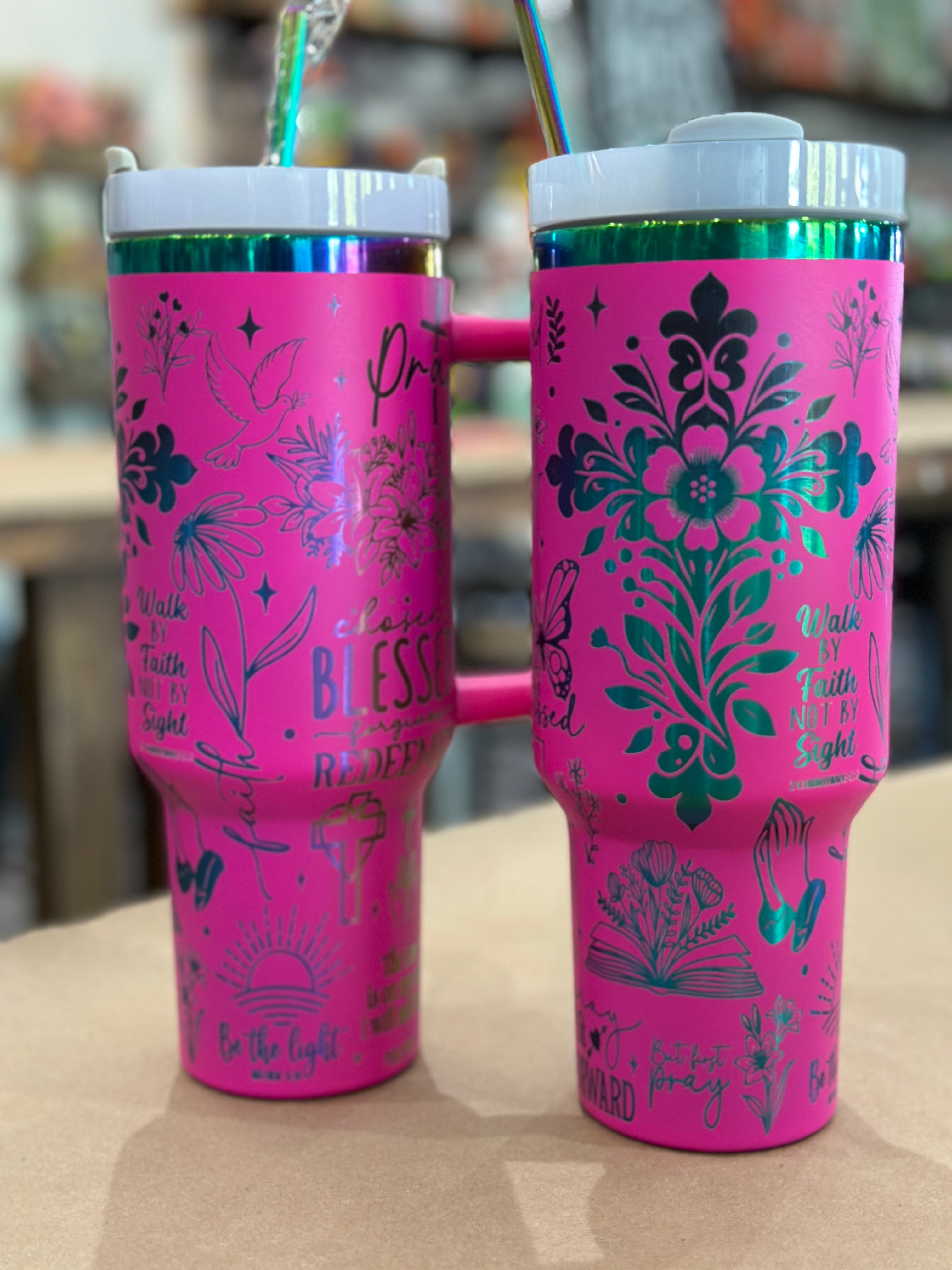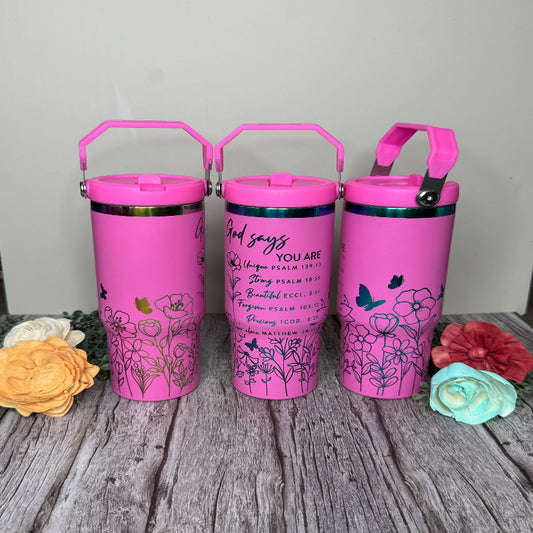 God Says Wrap 30 oz Pink with Copper Core Flip Top with Lid Handle P014022 -