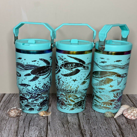 Turtle Full Wrap 30 oz Teal with Copper Core Flip Top with Lid Handle P014019 -