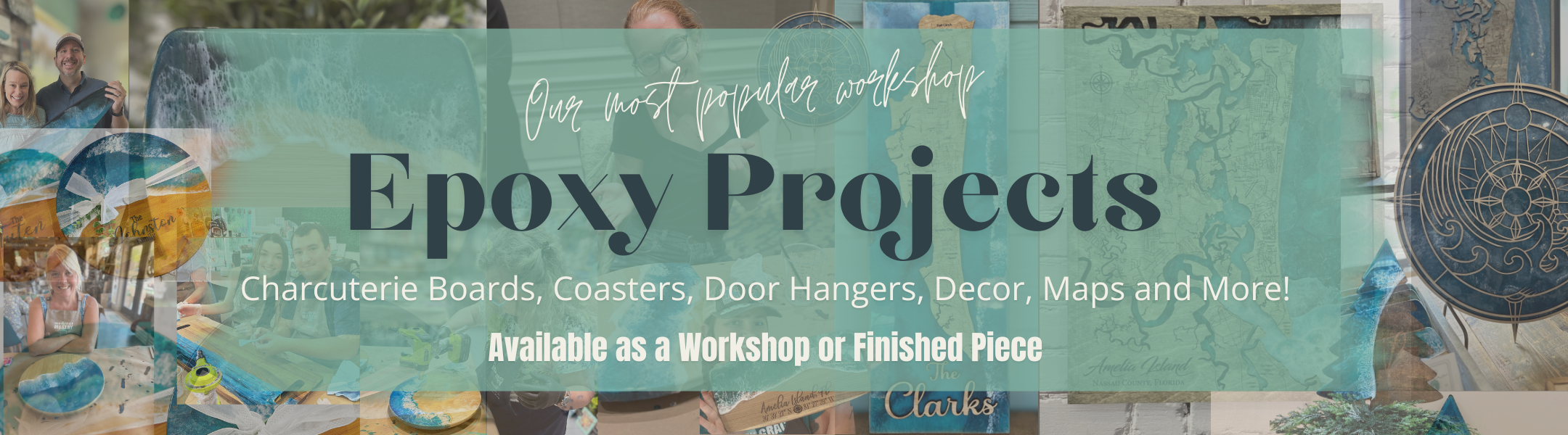 Epoxy projects are only available on specific dates. Or select finished project and we will pour one for you *all turn out unique and may not be exactly as pictured*
