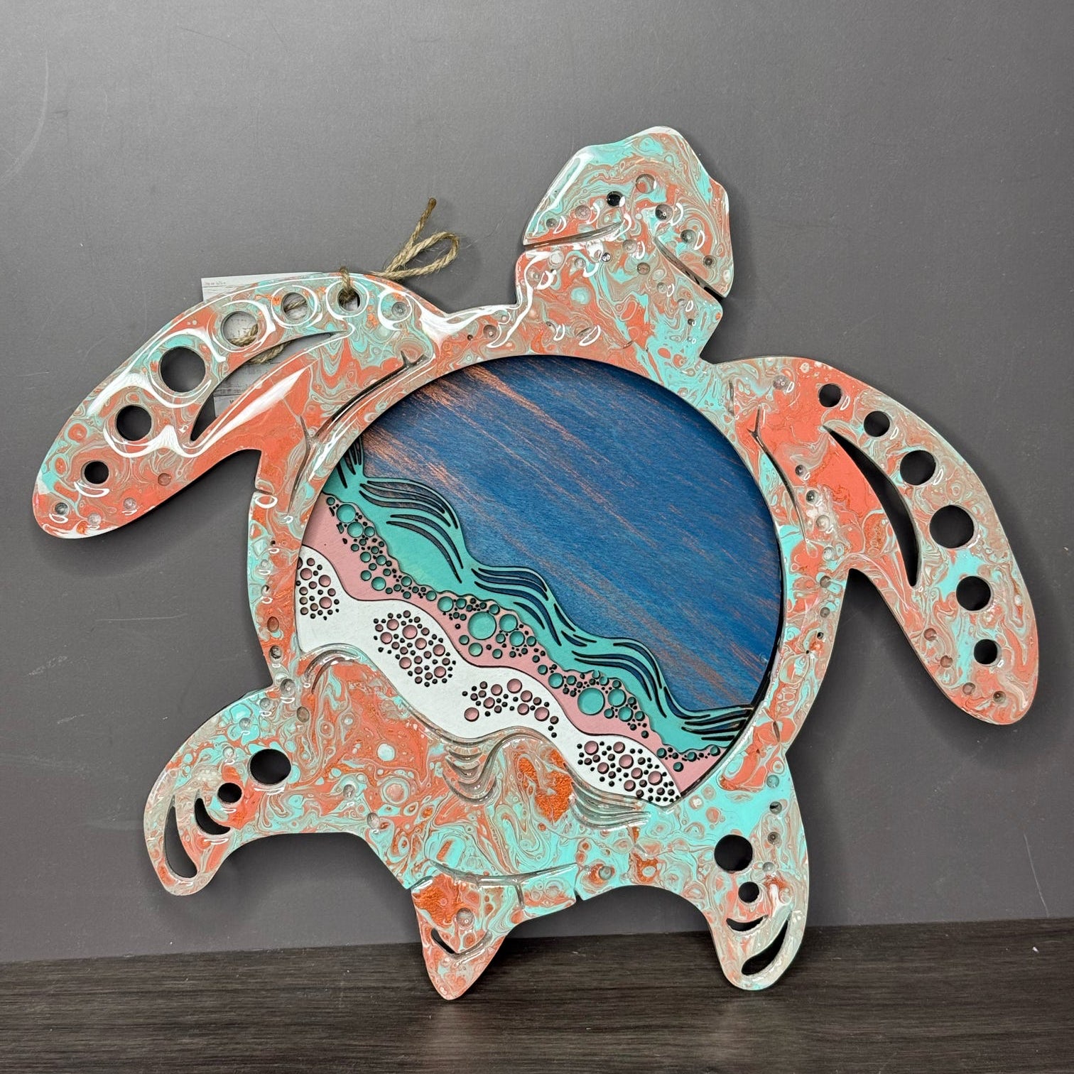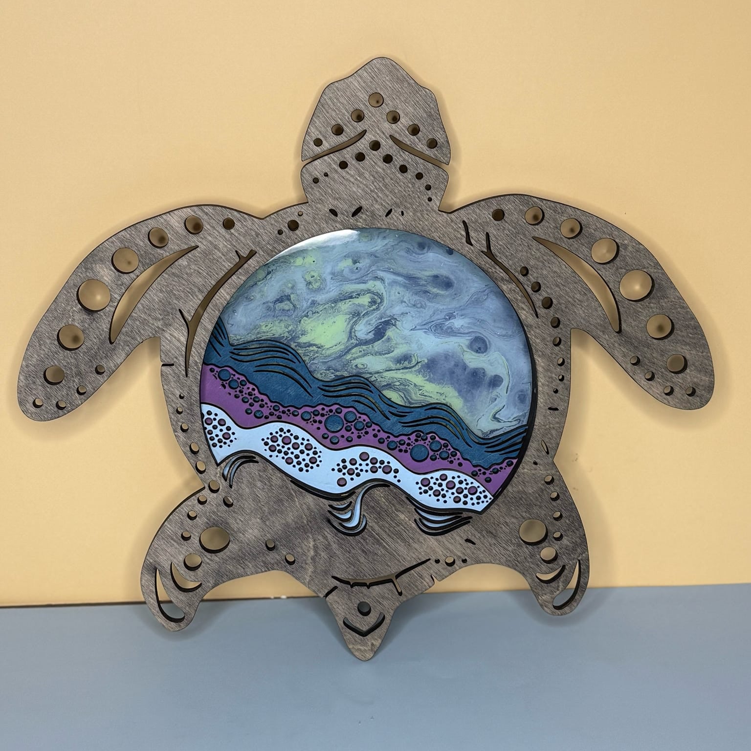 12" Layered Turtle Epoxy Paint Pour Green Sky -