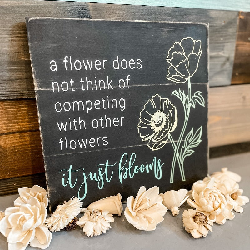Be bold and bloom your own way with this unique SQUARE DESIGN! Make a statement and encourage yourself to be your best self without the pressure of competition. Let your inner flower shine (YAS!) with this made-to-last reminder that #bloomin' ain't easy! #uniquelyyou!