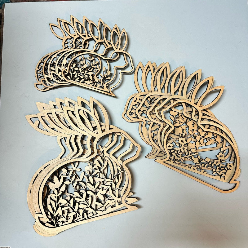 These adorable personalized tags come painted and ready to use.  The name is engraved onto the bunny.  Made from Baltic Birch. About 3" tall.