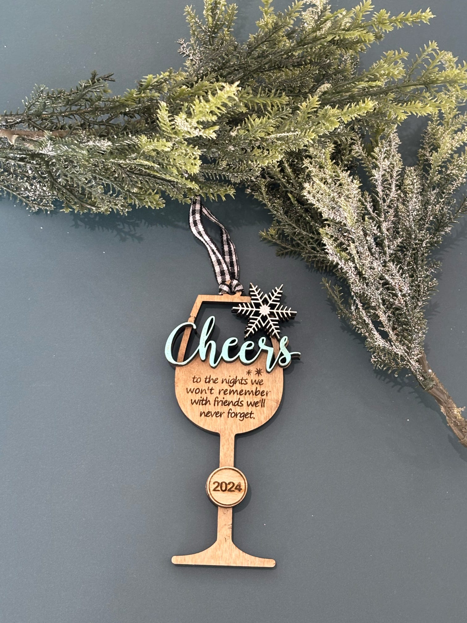Toast to the holidays with the Cheers Ornament! This quirky and fun ornament is the perfect addition to any Christmas tree. Its playful design and word play will add a touch of humor to your holiday decor. Cheers to a jolly and festive season!