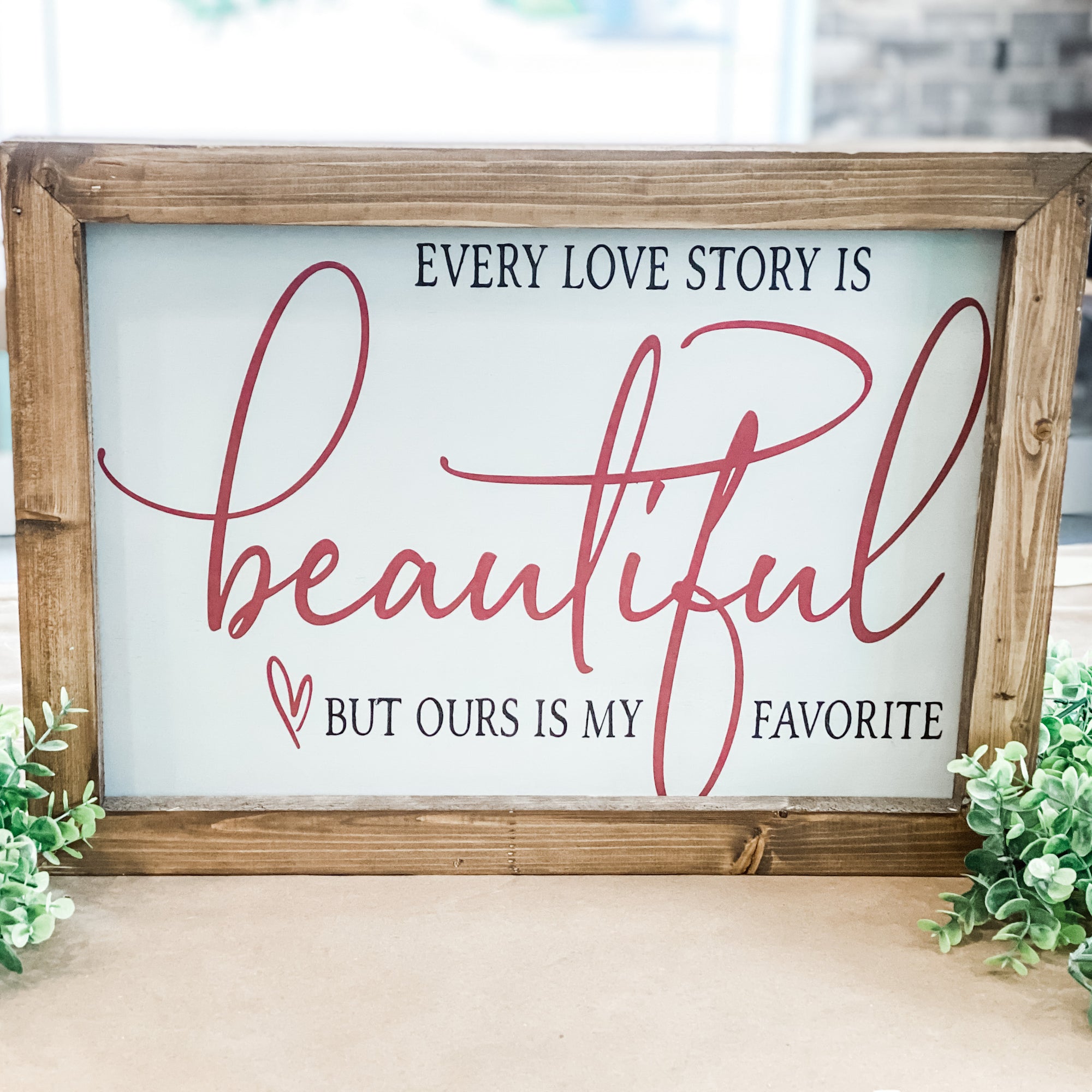 This adorable and sweet Every love story is beautiful but ours is my favorite Signature Design is perfect for any special occasion! Show your love and appreciation to your special someone with this beautiful and meaningful design—modern, romantic, and totally swoon-worthy!