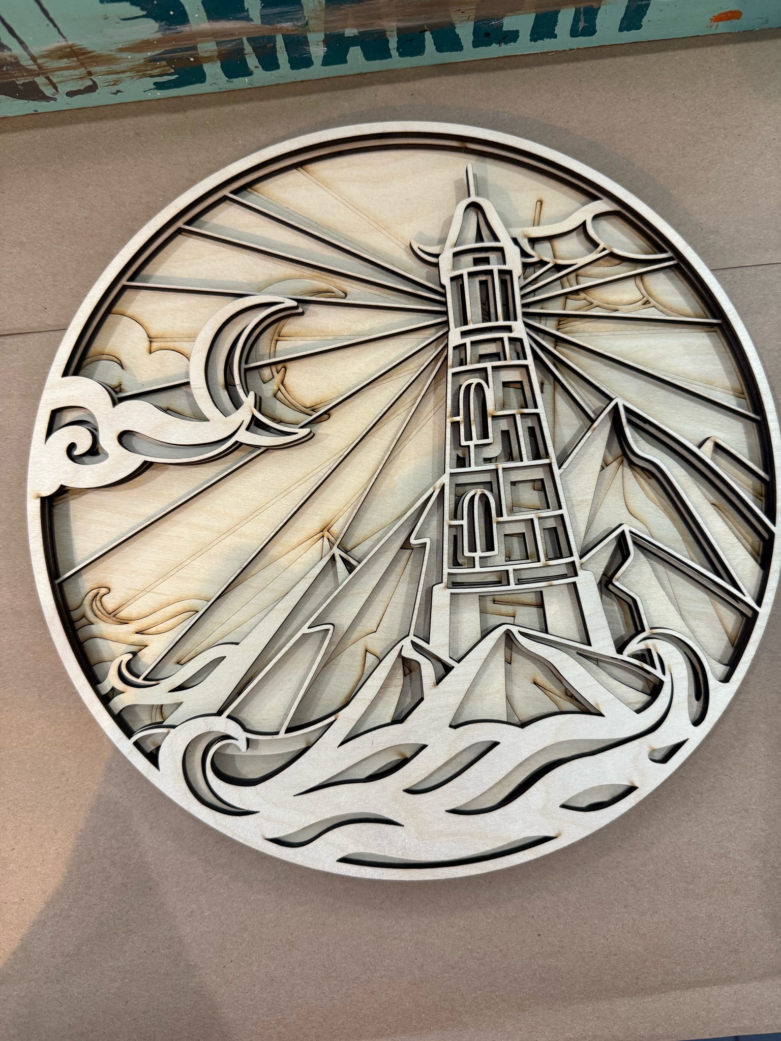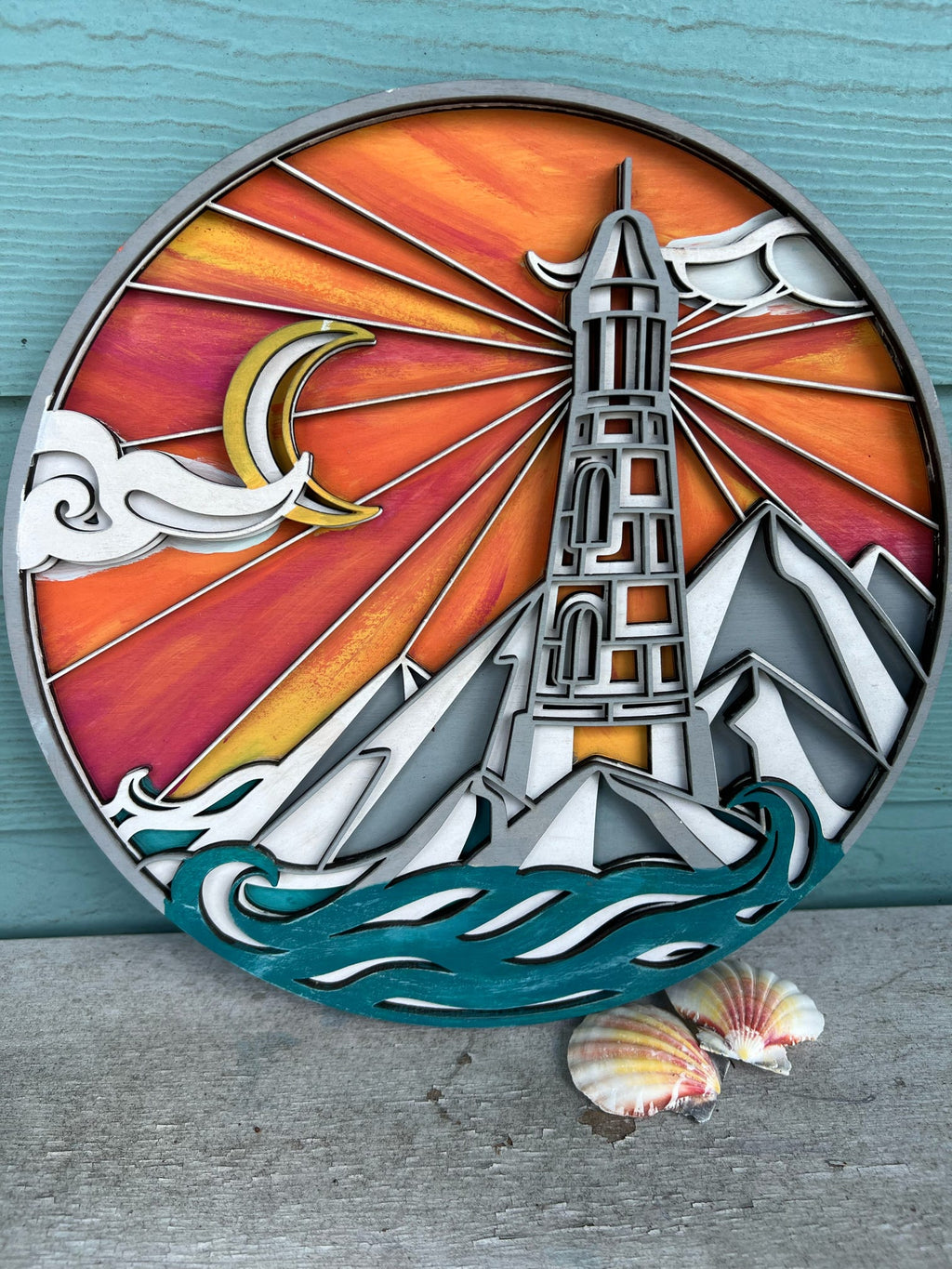 Light up your space with the Lighthouse Layered Round. This captivating piece features a unique lighthouse design that adds a touch of nautical charm to any room. Let this layered round piece guide you to a brighter, quirkier decor style.