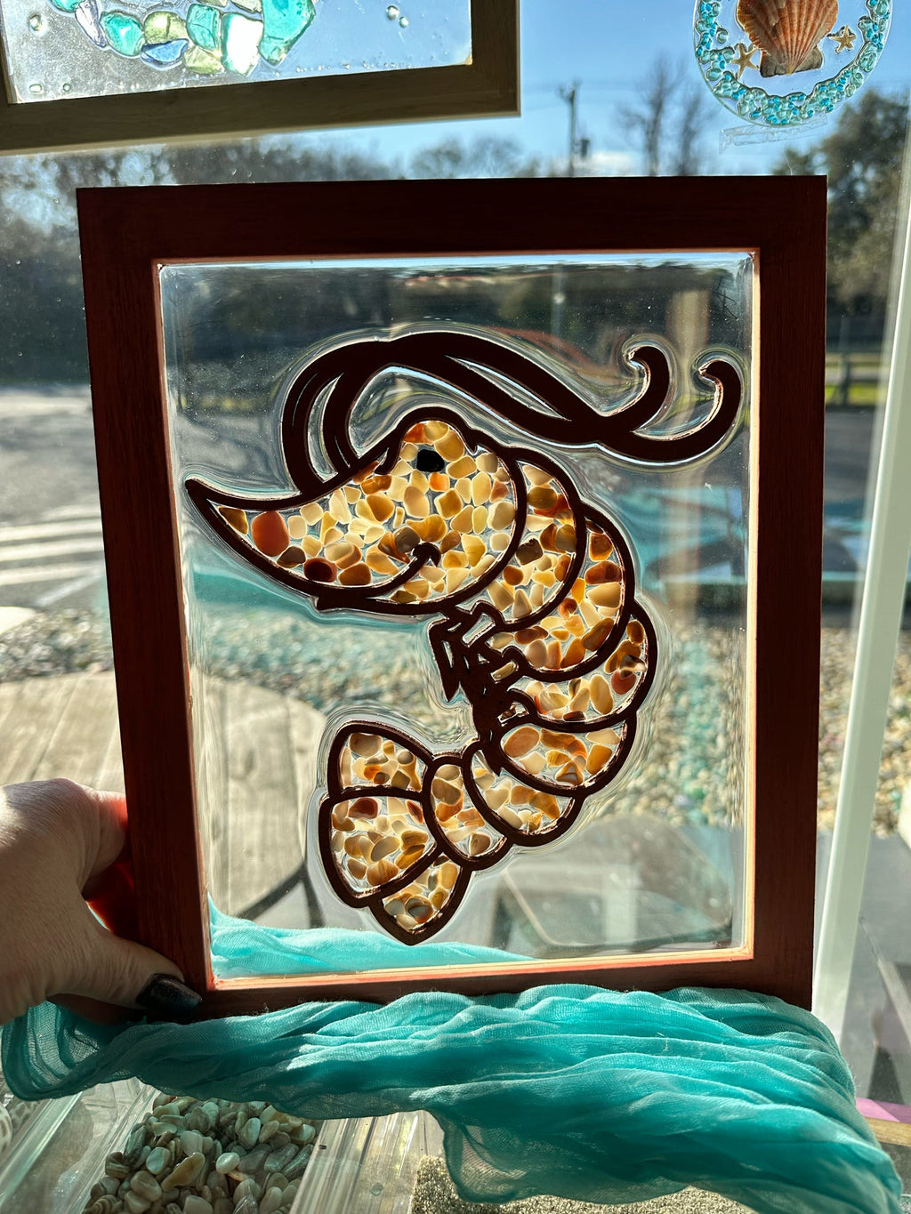 Unleash your creativity with our NEW Seaglass Workshop! Choose your favorite crushed glass and seaglass and create a beautiful display on the glass in this Shrimp outline, then secure it with epoxy. We have a wide variety of colors and shapes, but feel free to Bring your own in sea treasures from the beach to make unique sun catchers. This laid-back workshop is the perfect way to spend an evening!