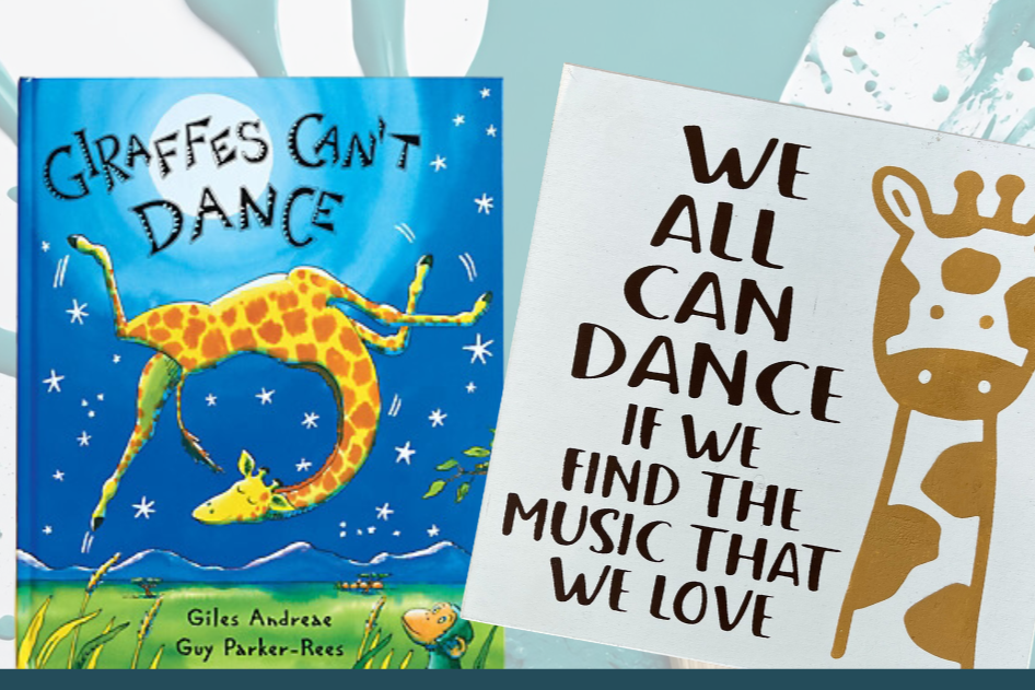 Introducing our We All Can Dance Giraffe Mini Design! This cute design is the perfect companion to the beloved book, Giraffe's Can't Dance. Show off your love for the story and spread the message of embracing our unique abilities through this adorable mini design. Perfect for all ages.