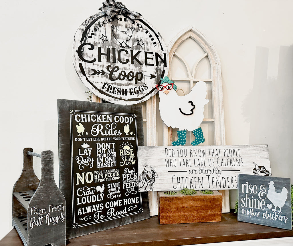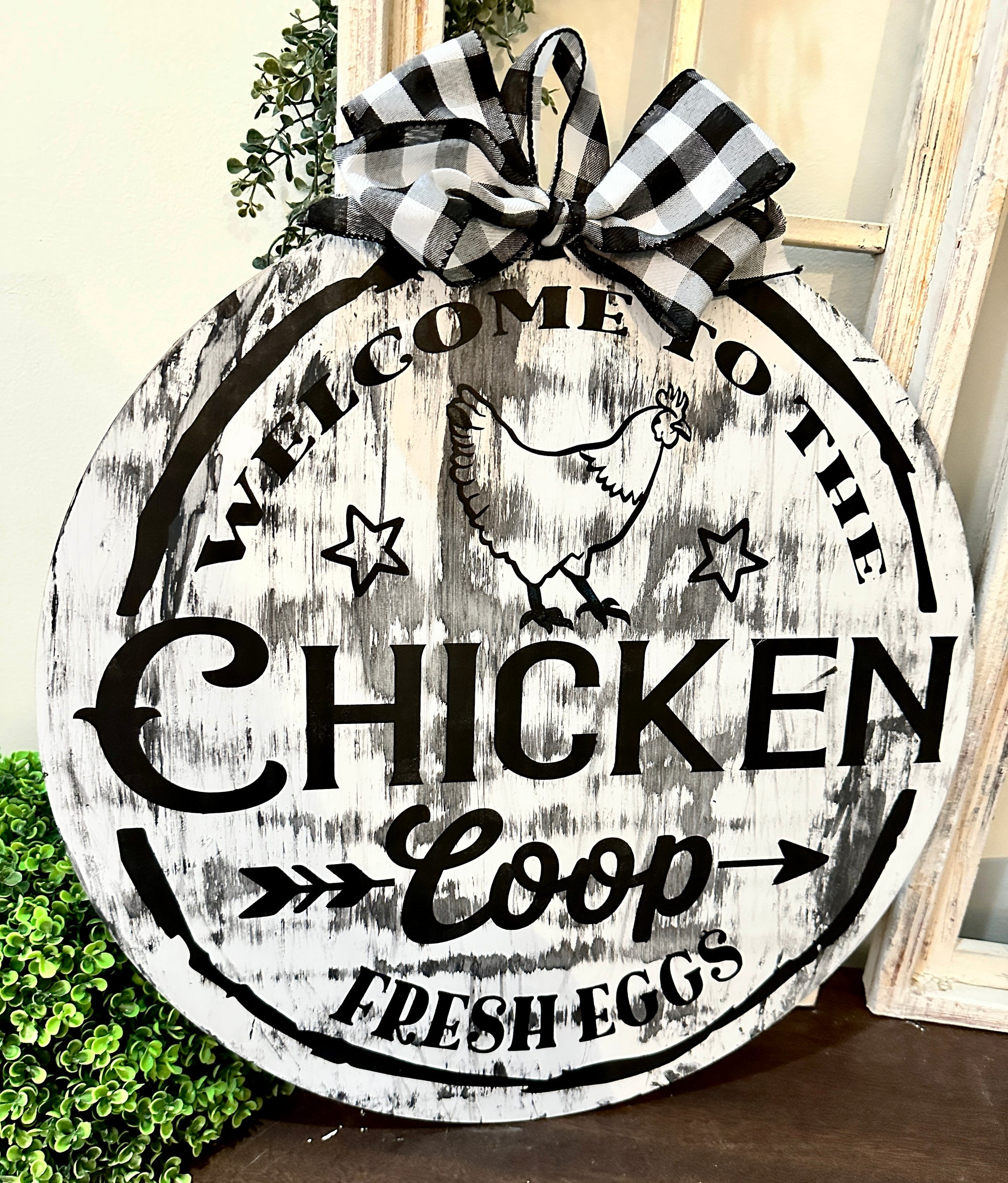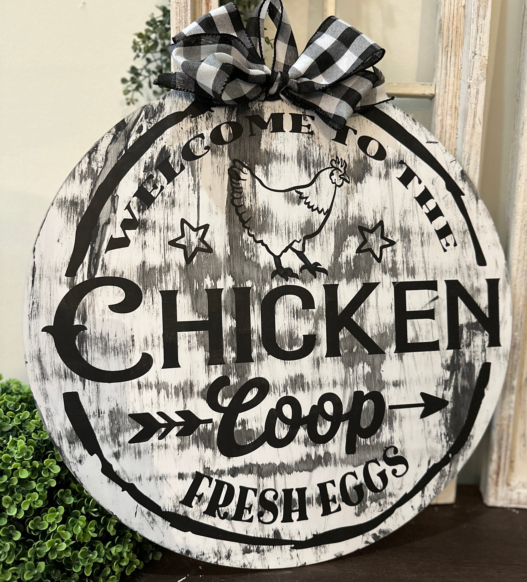 Welcome to the Chicken Coop! Kick the door down with this rustic, farmyard-inspired door hanger sign. Hang it up and you can cluck with confidence knowing your home is as cozy as a henhouse. (It even works as a roost for visitors who "strut" in!)